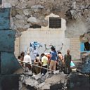 (Picture: People inspect a damaged wall of a police station after a car bomb attack in Aden, Yemen on 1st August 2019. Credit: Wael Shaif Thabet/Anadolu Agency/Getty Images)