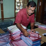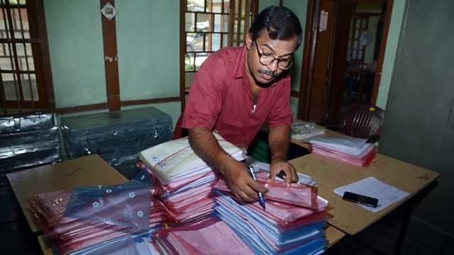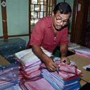 (Picture: A National Register of Citizens office worker checks documents ahead of the release of the final draft of NRC in Assam, India. Credit: EPA/STR)