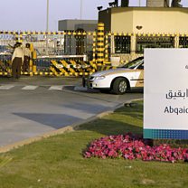 (Image: The entrance of the oil processing plant of the Saudi state oil giant Aramco in Abqaiq. Credit: AFP)