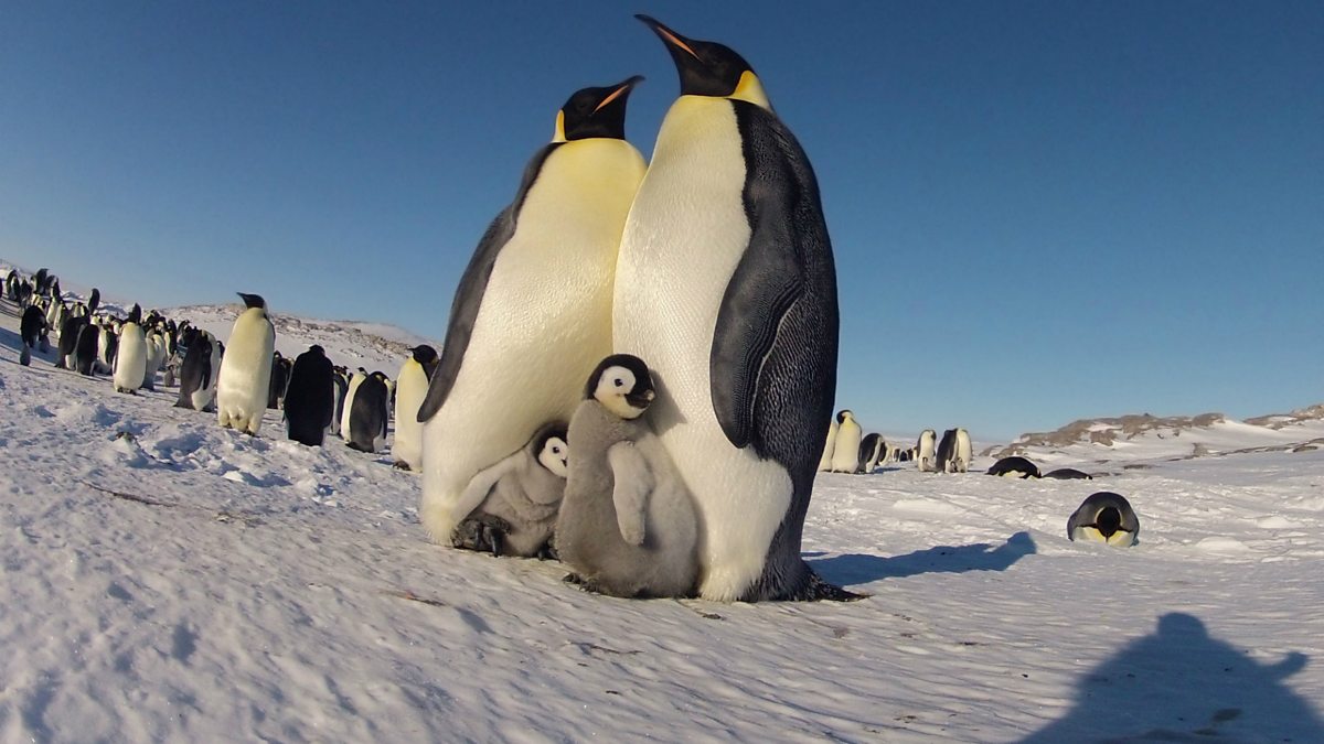 (Image: Emperor penguins with their chicks in Antarctica. Credit: BBC)