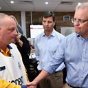 PICTURE: Australian Prime Minister Scott Morrison greets a New South Wales Rural Fire Service officer during a briefing at the Wollondilly Emergency Control Centre in Sydney. CREDIT: EPA/JOEL CARRETT)