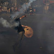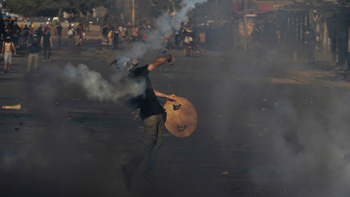 (Photo: A demonstrator throws a tear gas canister back at riot police during a protest against Chilean President Sebastian Pinera’s government in Santiago. Credit: Getty Images)