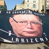 (Photo: File photo shows students in 2017 carrying a banner calling for the resignation of Malta’s police chief outside the nation’s parliament building. Credit: Matthew Mirabelli/AFP)