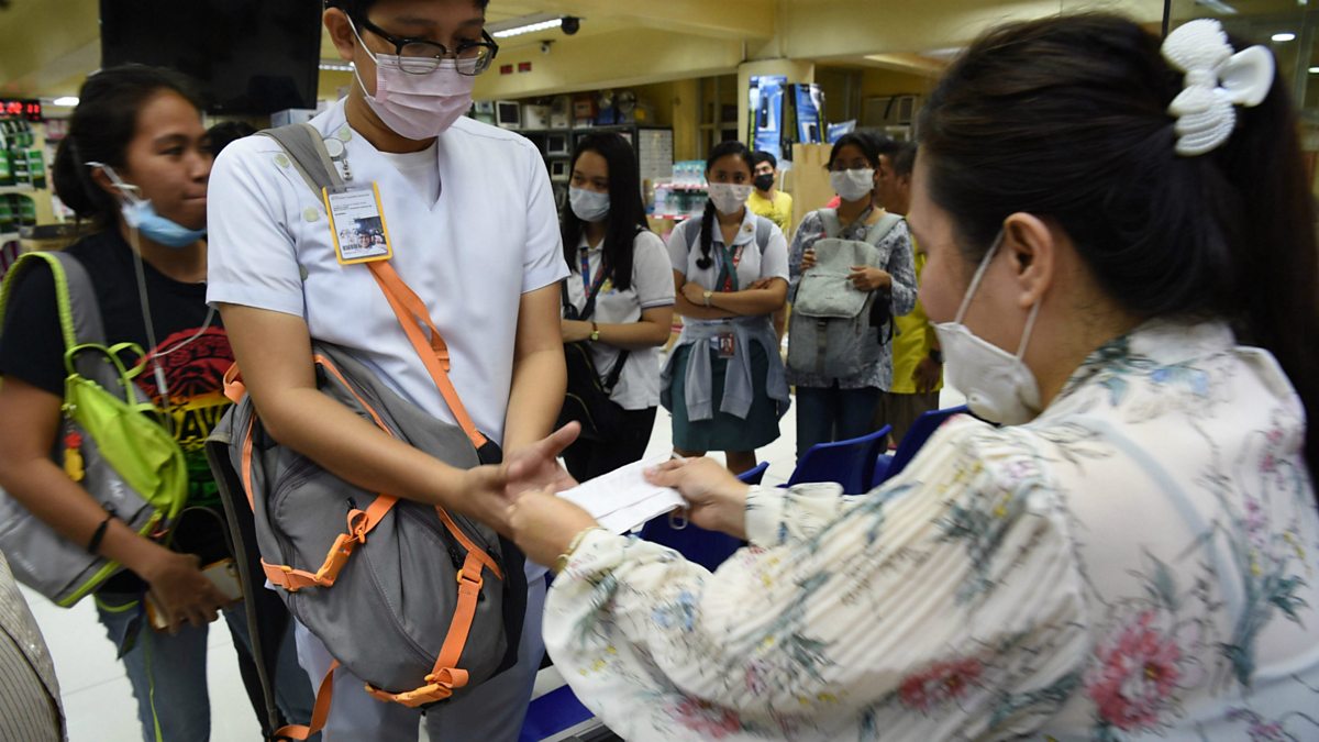 (Photo: People queue up to receive free protective masks being distributed by a medical supplies store in Manila. Credit: Getty Images)