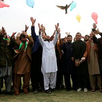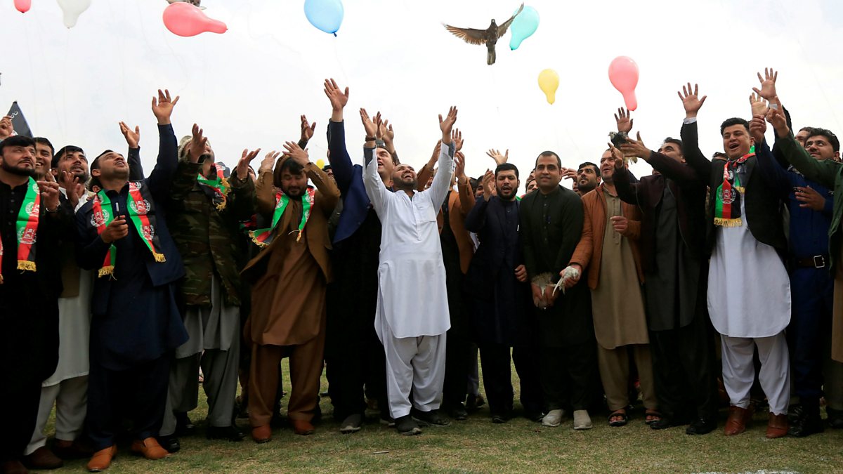 (Image: Afghan men celebrate in anticipation of the US-Taliban agreement. Credit: Reuters.)