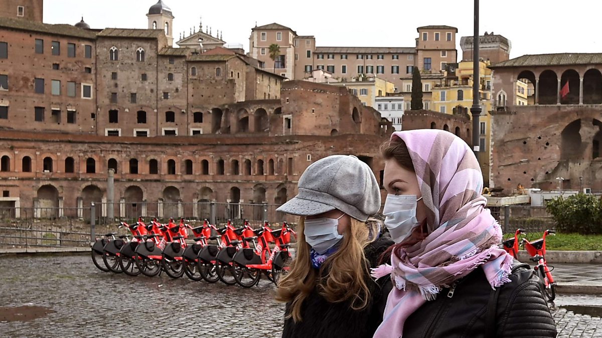 (Photo: Two women wearing protective masks in Italy. Credit: Reuters)