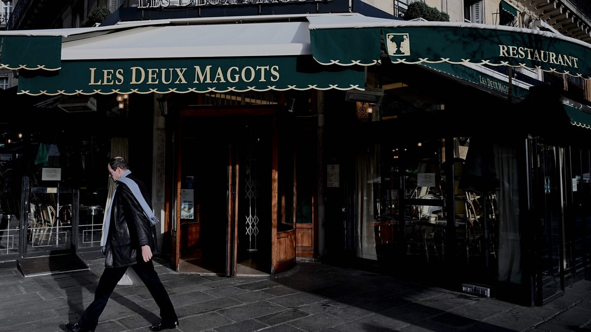 PHOTO: A man walks past Les Deux Magots cafe closed in Paris (CREDIT: Philippe LOPEZ / AFP)