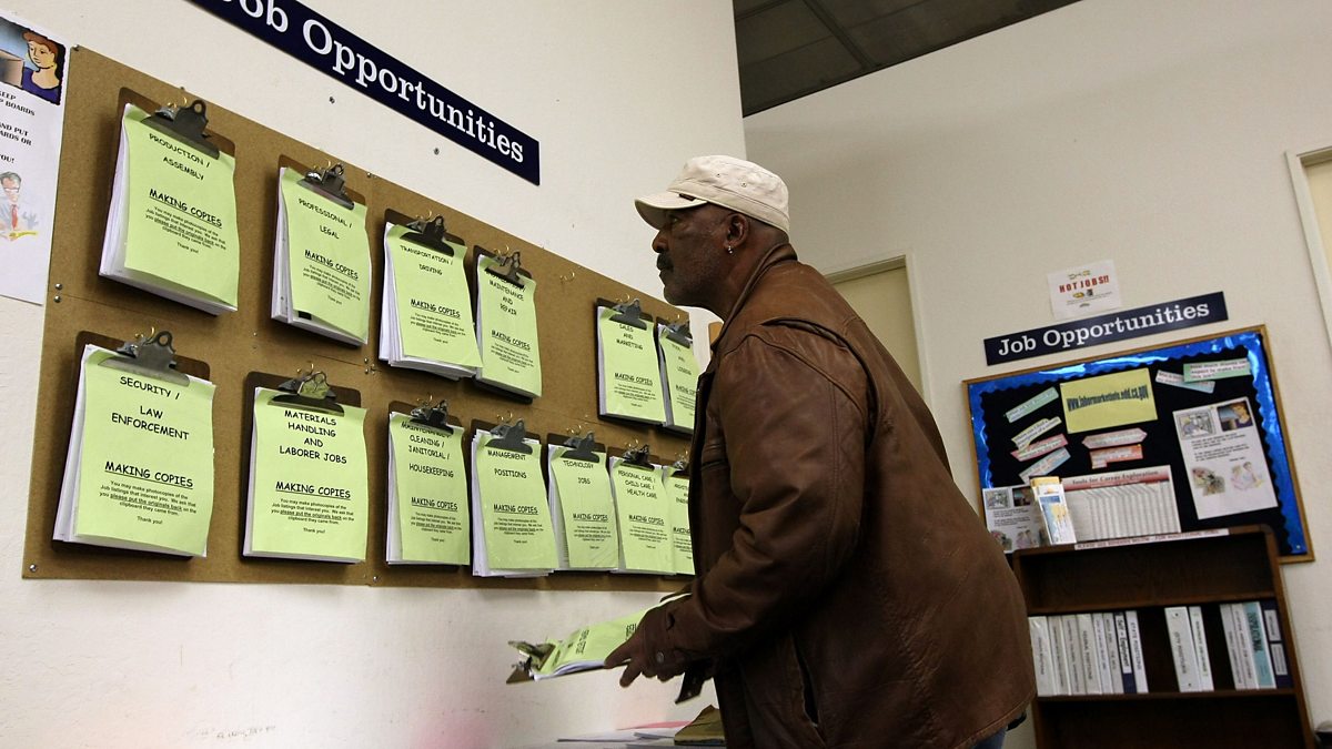 (Image: A job seeker Kenneth Massingale looks at job listings posted in Oakland, California. Photo by Justin Sullivan/Getty Images)