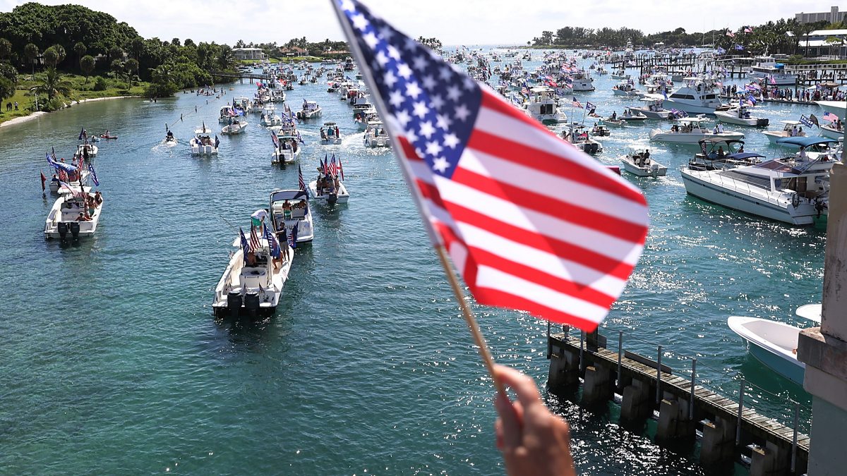 (Image: An American flag waves as boaters show their support for US presidential campaigning. Credit: Joe Raedle/Getty Images)