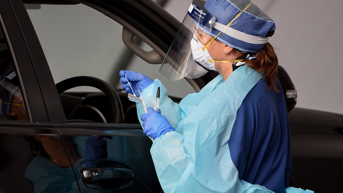 (Photo: Medical professionals perform novel coronavirus disease tests on members of the public at the Bondi Beach drive-through COVID-19 testing center in Sydney, New South Wales, Australia. EPA/Bianca De Marchi)