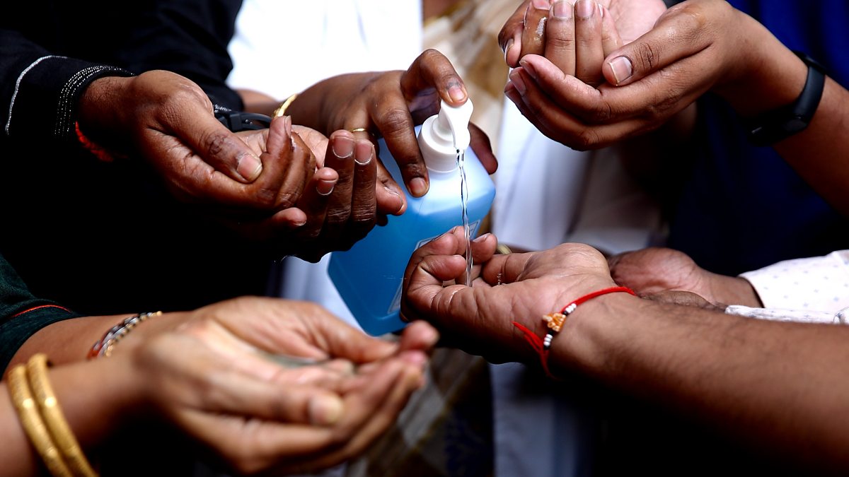 (Photo: Members of Victoria Hospital Medical staff demonstrate to the public on how to properly wash their hands using sanitiser, during awareness campaign following the coronavirus outbreak, in Bangalore, India. Credit: EPA/Jagadeesh NV)