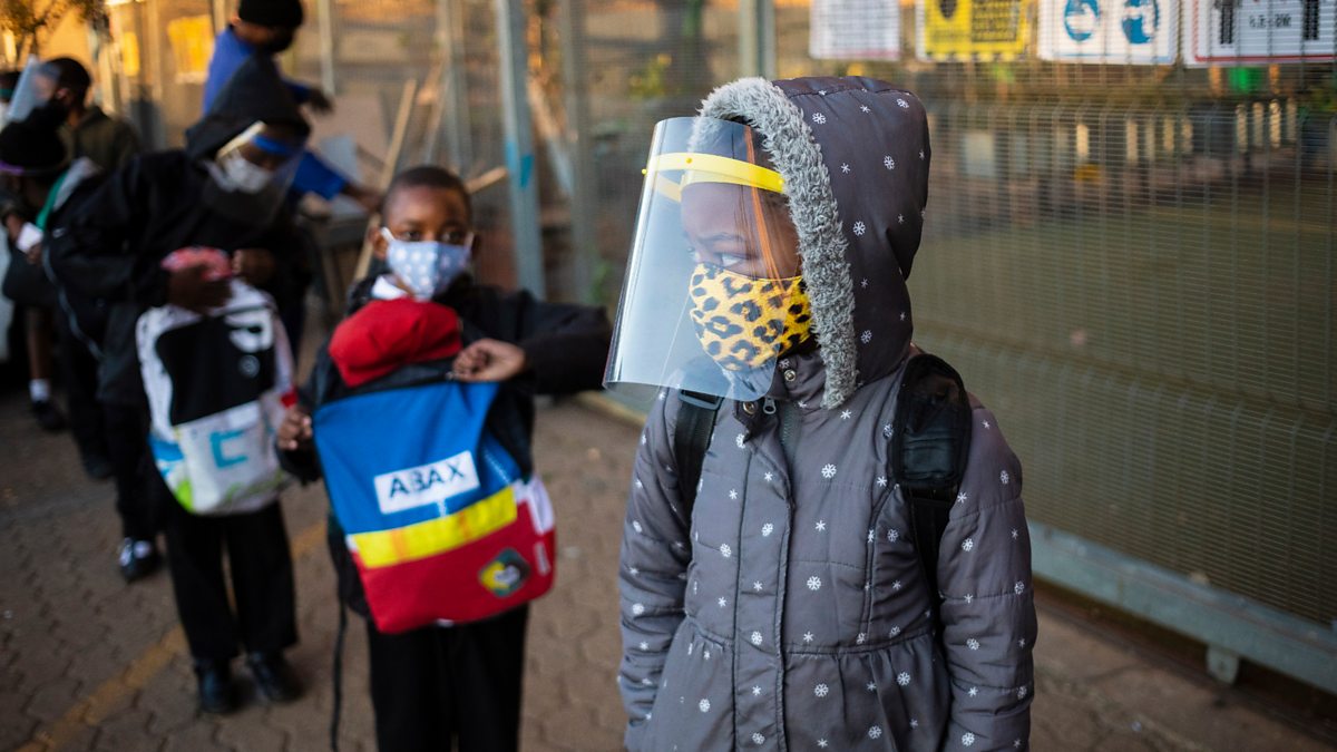 (Photo: Schoolchildren returning to school in South Africa, August 13th 2020. Credit: EPA/KIM LUDBROOK)