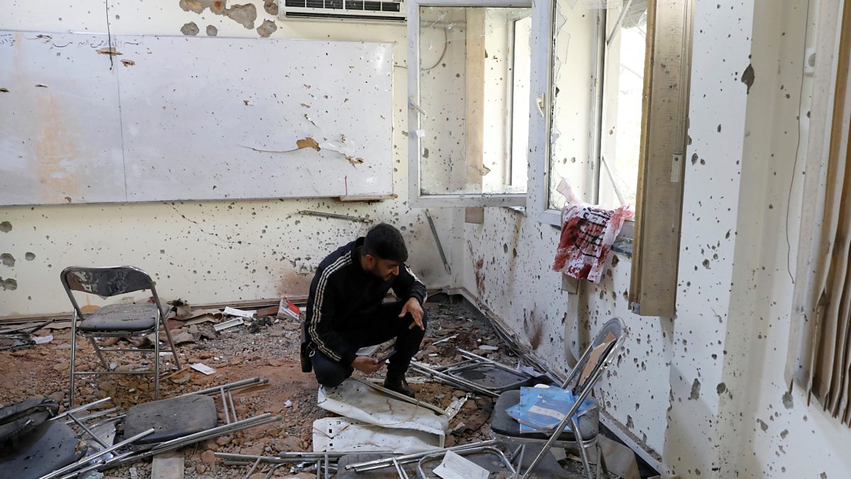(Photo: An Afghan journalist inspects a damaged classroom after attack at Kabul University, November 3, 2020. Credit: Reuters/Mohammad Ismail)
