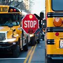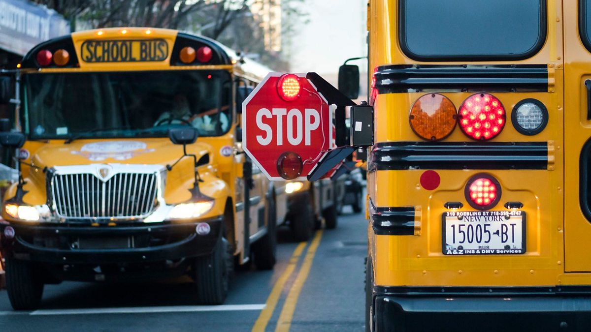 Picture: School buses at the end of the school day in Brooklyn, New York, on Wednesday after the public school shutdown was announced. (EPA / JUSTIN LANE)