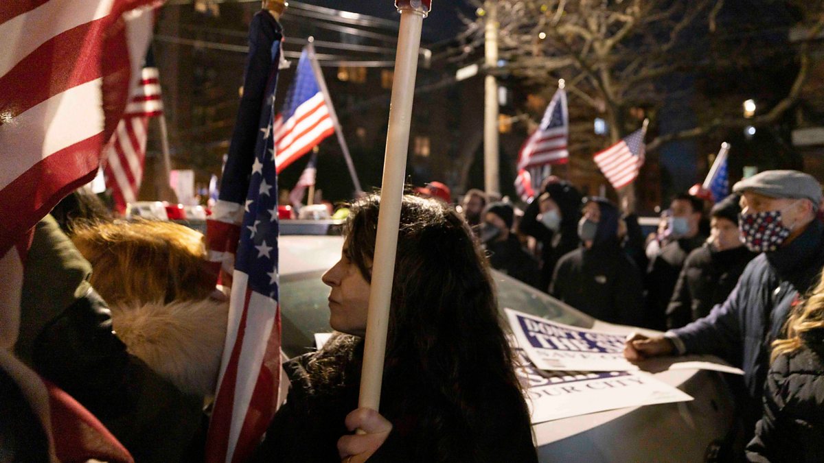 (Photo: People gather for a rally against state and city mandates to stop indoor dining to control the spread of the coronavirus, in Staten Island, New York, USA. Credit: EPA/JUSTIN LANE)