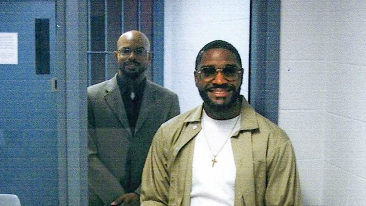 (Photo: An undated handout photo made available by the defense team of Brandon Bernard shows federal inmate Brandon Bernard (R) with Pastor Aaron Chancy (L) as Bernard sits on death row awaiting his scheduled execution in Terre Haute, Indiana, USA, Issued 10 December 2020. Credit: Defense Team of Brandon Bernard/EPA)