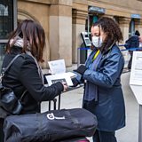 (Photo: A Eurostar staff member control passengers at the departures terminal at Gare du Nord to London on the first post-Brexit day in Paris, France. Credit: EPA/Christophe Petit Tesson)