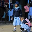 (Photo: A pupil helping another tie her shoe laces before heading to their classrooms during the reopening of schools at the Daima Primary school in Nairobi, Kenya, 04 January 2021 Credit: Daniel Irungu/EPA)