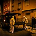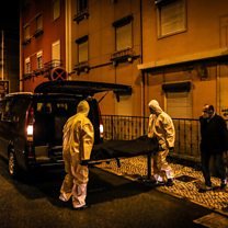 (Photo: Funerary workers wearing protective suits carry the body of a man who died inside his house during the nigh in Lisbon Credit: MARIO CRUZ /EPA)