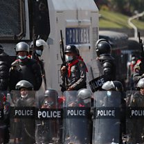 Police in Myanmar have fired rubber bullets during a demonstration in the capital Nay Pyi Taw, as thousands defied a ban on protests. Water cannons and tear gas have also been used against protesters, who are standing against a coup that removed the elected government last week. We hear from our BBC Burmese reporter and people living in the country.