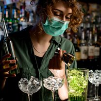 Picture: Bartender makes cocktails in a mask (Getty Creative / MaximFesenko)