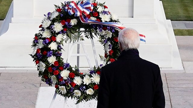 (Photo: U.S. President Joe Biden attends a wreath laying ceremony at the Tomb of the Unknown Soldier at the Arlington National Cemetery, in Arlington, Virginia, U.S., January 20, 2021. Credit: Reuters/Joshua Roberts/Pool)