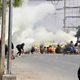 (Photo: Demonstrators take cover behind a barricade during an anti-coup protest in Mandalay 15/03/2021. Credit: Reuters)