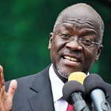 (Photo: Tanzania's President Magufuli addresses members of the ruling CCM at the party's offices on Lumumba road in Dar es Salaam