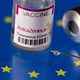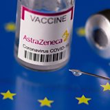 (Photo: Vials labelled "AstraZeneca coronavirus disease (COVID-19) vaccine" placed on displayed EU flag are seen in this illustration picture