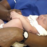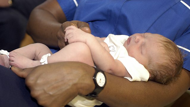 (Photo: Midwife holding a newborn baby. Credit: BBC)