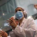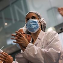 (Picture: Health workers Barcelona applaud citizens who showed their gratitude to hospital staff from balconies and windows last week. Credit: Nacho Doce/Reuters)