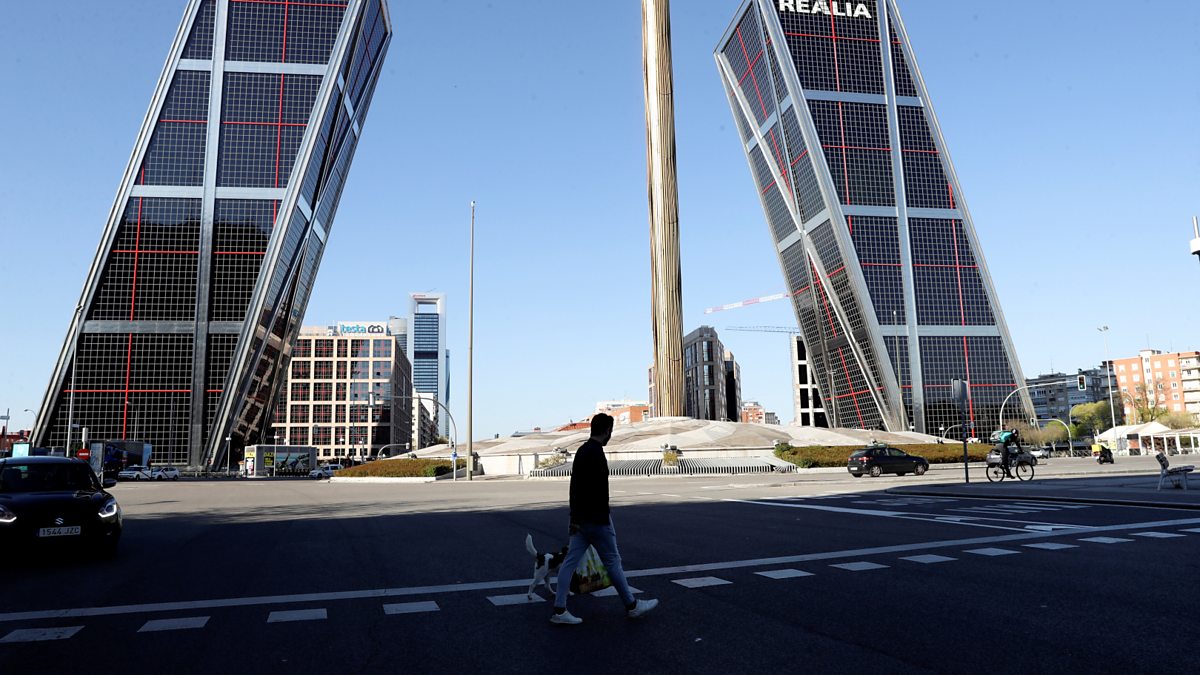 (Photo: A general view of the almost empty Plaza Castilla in central Madrid, Spain. Credit:EPA).