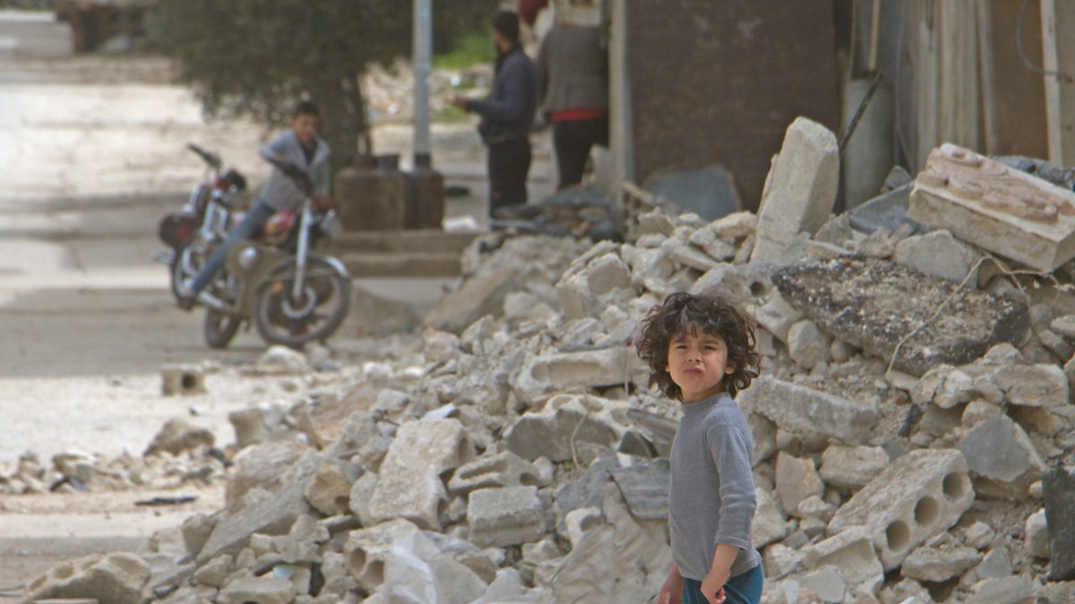 (Photo: A child stands near debris and damaged buildings in Aleppo, Syria on April 2020. Credit: Getty Images)