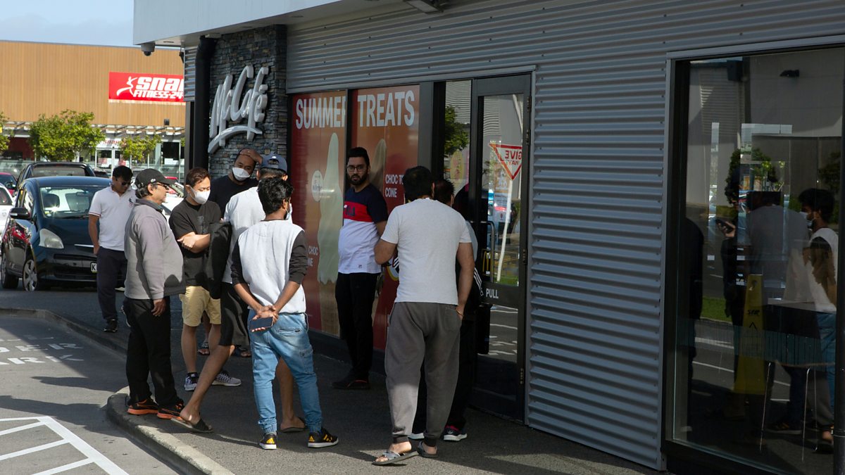 (Photo: People wait to collect takeaway food at a McDonald’s in Auckland credit: Reuters/Ruth McDowall)
