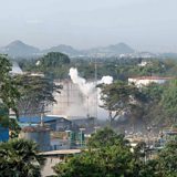 (Photo: Smoke rises from an LG Polymers plant following a gas leak in Visakhapatnam. Credit: STR/AFP via Getty Images)