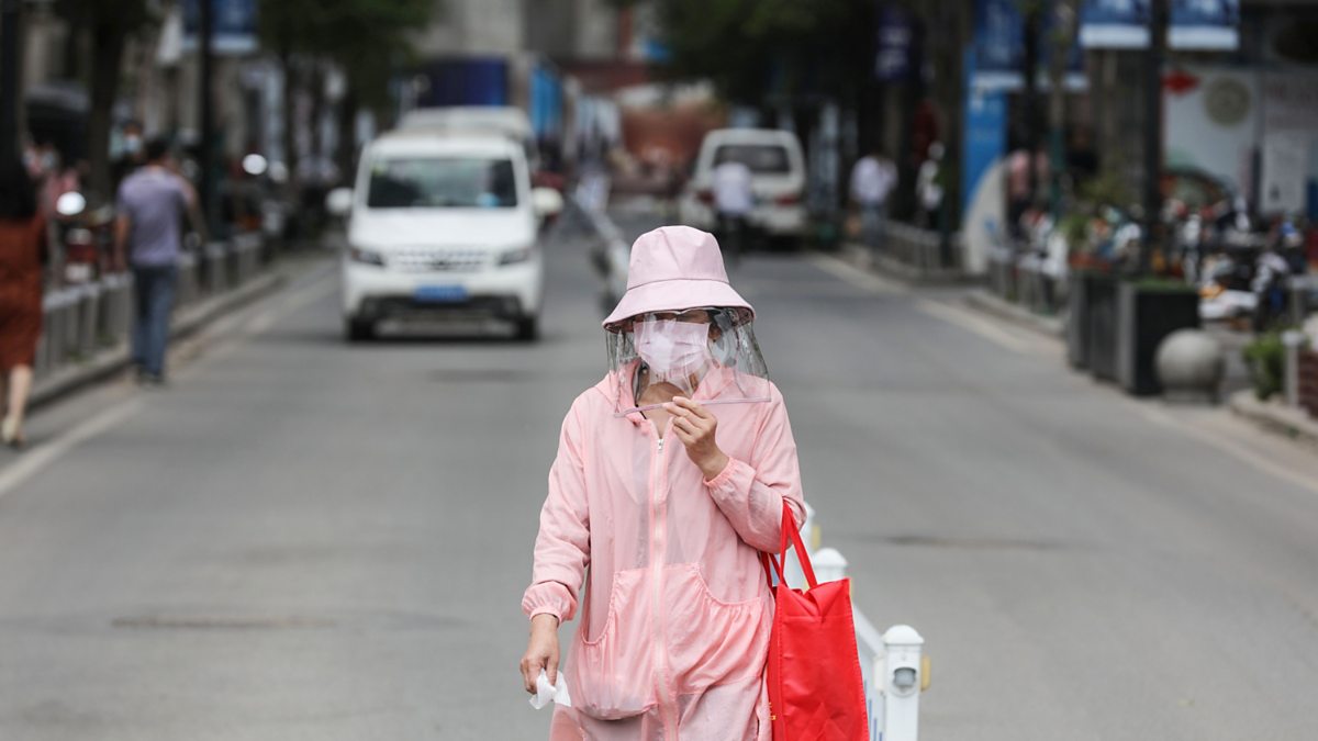(Photo: A woman wears a face shield as she walks along a street in Wuhan, China on May 11th of 2020. Credits: Getty Images).