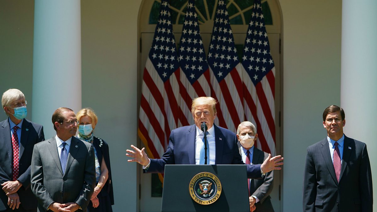 (Photo: US President Donald Trump speaks on vaccine development in the Rose Garden of the White House in Washington, DC on May 15, 2020. Credit: Mandel Ngan via AFP/Getty)
