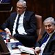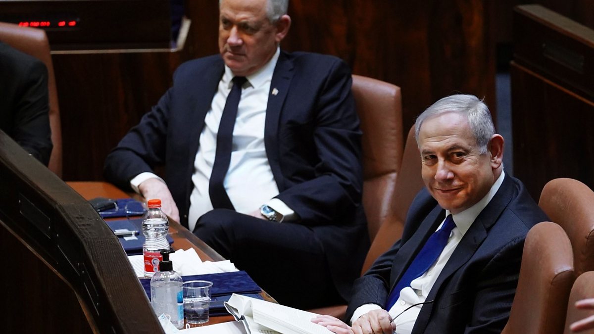 Photo: Israeli Prime Minister Benjamin Netanyahu and alternate PM Benny Gantz at the swearing-in ceremony of the new government in Jerusalem Credit: AFP via Getty Images