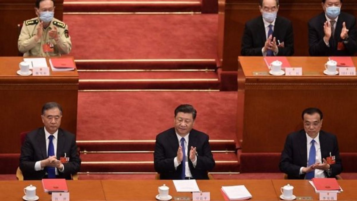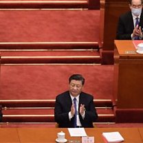 (Photo: President Xi Jinping and other senior figures applauded when the security law was passed. Credit: AFP)