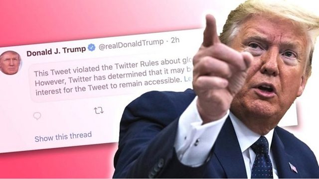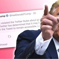 Twitter has hidden one of Donald Trump’s tweets behind a warning that it ‘glorifies violence’ in a further escalation of the company’s row with the US president.