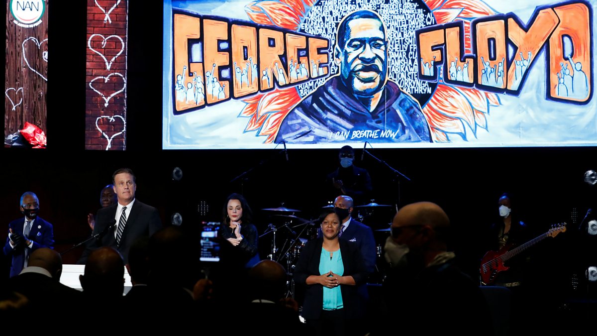 Civil rights leaders have joined family and friends for a memorial service in Minneapolis for George Floyd. The service was held on the day new charges were announced against the four police officers involved in Mr Floyd's death.