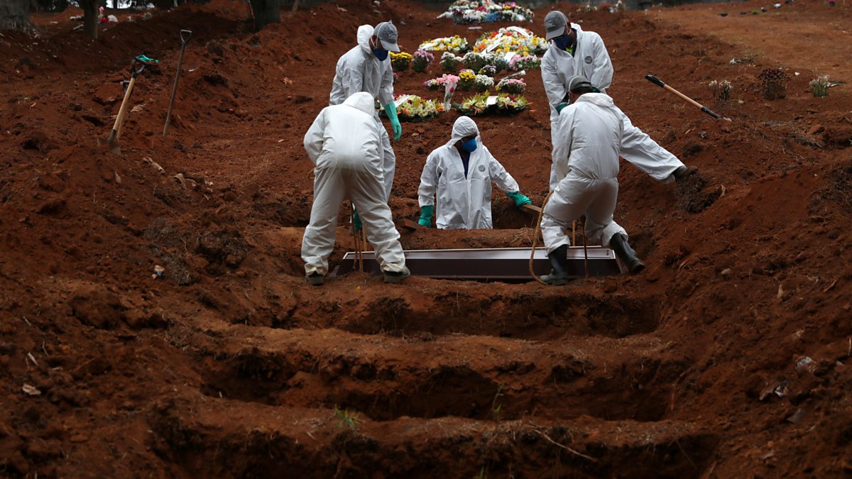 (Photo: Gravediggers wearing protective suits at Sao Luiz cemetery, in Sao Paulo, Brazil. Credit: Reuters/Amanda Perobelli)