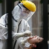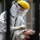 (Image: A nurse takes a nucleic acid test for Covid-19 from a person in Beijing. Credit: Lintao Zhang/Getty Images)