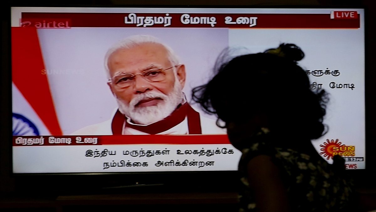 (Photo: India's Prime Minister Narendra Modi making a statement on television in India. Credit: EPA/JAGADEESH NV)