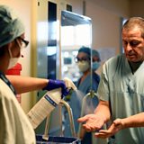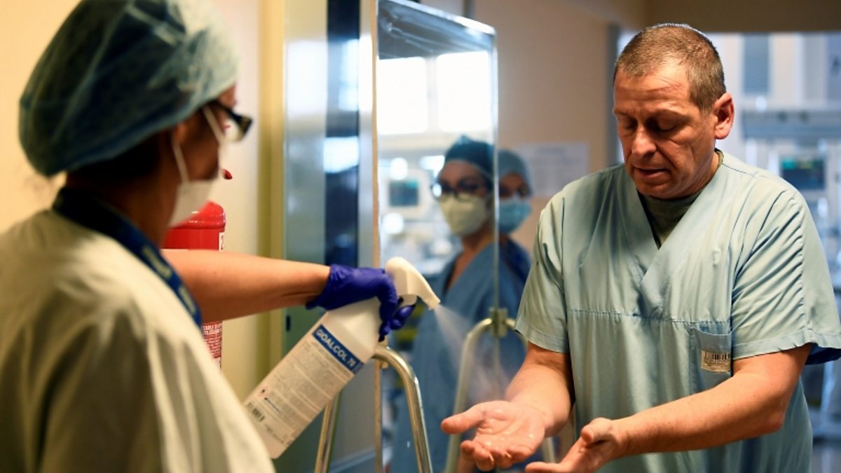 (Photo: A medical staff member disinfects his hands in the intensive care unit, where patients suffering from the coronavirus disease (COVID-19) are treated, at the Circolo hospital in Varese, Italy. Credit: Reuters/Flavio Lo Scalzo)