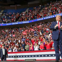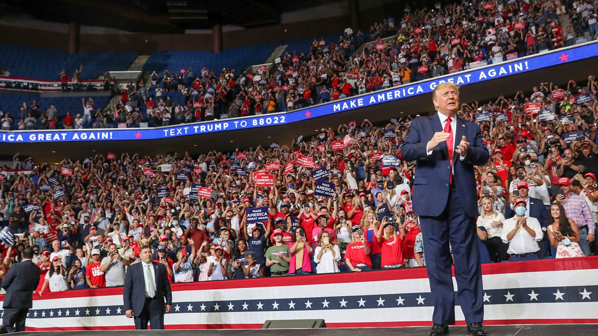 President Trump has held his first campaign rally since the US coronavirus lockdown began, in front of a smaller than expected crowd.