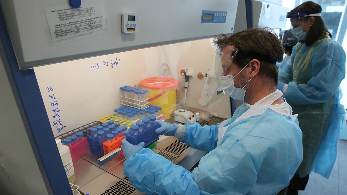 (Photo: Scientists at a laboratory analysing coronavirus swabs in Glasgow, Scotland, June 2020. Credit: Andrew Milligan/PA Wire)