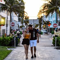Photo: A couple embrace each other as they walk on Ocean Drive in Miami Beach, Florida. Young adults in Florida are fuelling fears of a dangerous rise in COVID-19 infections Credit: CHANDAN KHANNA / AFP