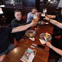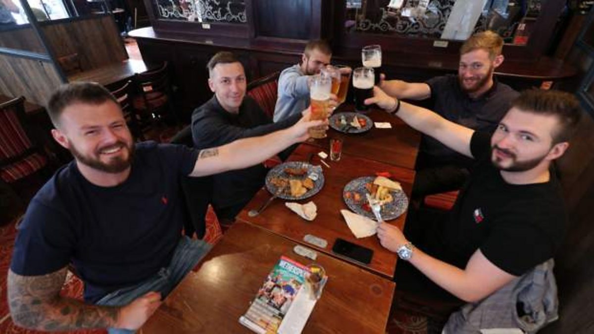 Also in the programme: How Covid-19 could have been avoided and how the Jewish community in Moscow is dealing with the pandemic (Photo: a group of friends give a toast in a pub with their drinks. Credit: PA Media)