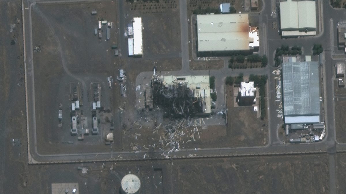 (Photo: 08/07/2020 Maxar Technologies: Close-up satellite image shows Maxar imagery of the Natanz enrichment facility in Iran, July 8th 2020, that provide a clear visual of the extent of the recent explosion and fire that destroyed a building in the complex. A fire that broke out on Thursday (02/07/2020) at the key Iranian nuclear facility has caused "significant damage", a spokesman for Iran's nuclear energy body has said. He said the cause of the blaze at the Natanz enrichment site had been determined, but gave no details. The spokesman added that the destroyed machinery would eventually be replaced by more advanced equipment. The fire hit a centrifuge assembly workshop. Some Iranian officials have blamed possible cyber-sabotage. Credit: Maxar Technologies)